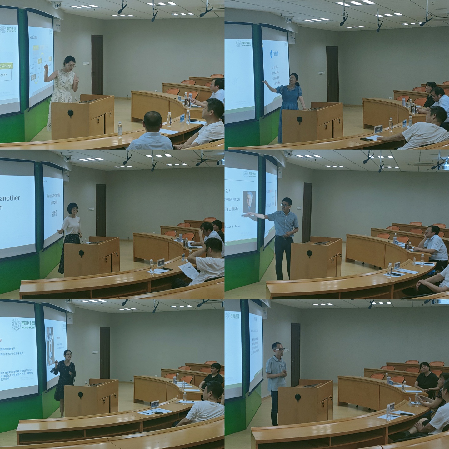 本次试讲的课程有:《专业硕士英语》、《社会主义市场经济与中国宏观经济分析》、《学术英语》、《管理经济学》、《证券投资分析》、《组织行为学》、《财务会计理论与实务》、《系统工程》、《定量分析:模型与方法》和《创业管理》。新聘师资依次试讲,各显身手;评审专家逐一点评,中肯建言!